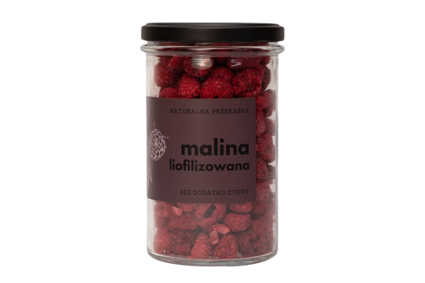 100% naturalna malina bez cukru – intensywny smak, chrupkość i bogactwo witamin. Idealna do jogurtów, śniadań i jako przekąska.