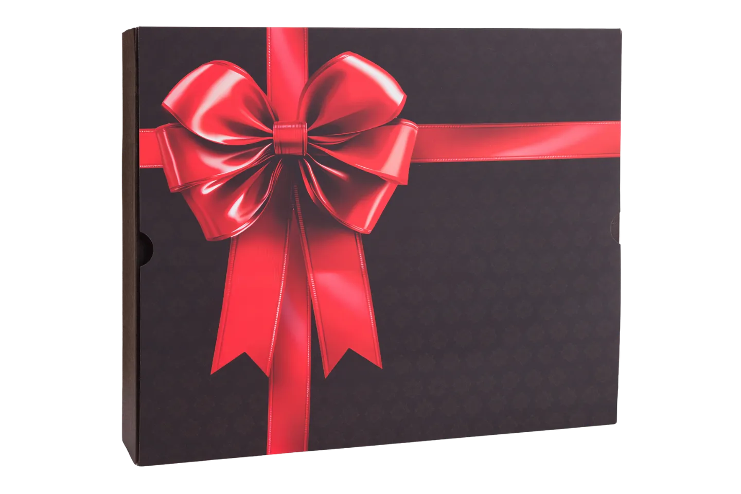 🎀 Całość zapakowana jest w eleganckie, ozdobne pudełko prezentowe o wymiarach 37 x 45 x 10 cm ze złotym wzorem i nadrukowaną, czerwoną kokardą – idealne na prezent pod choinkę!